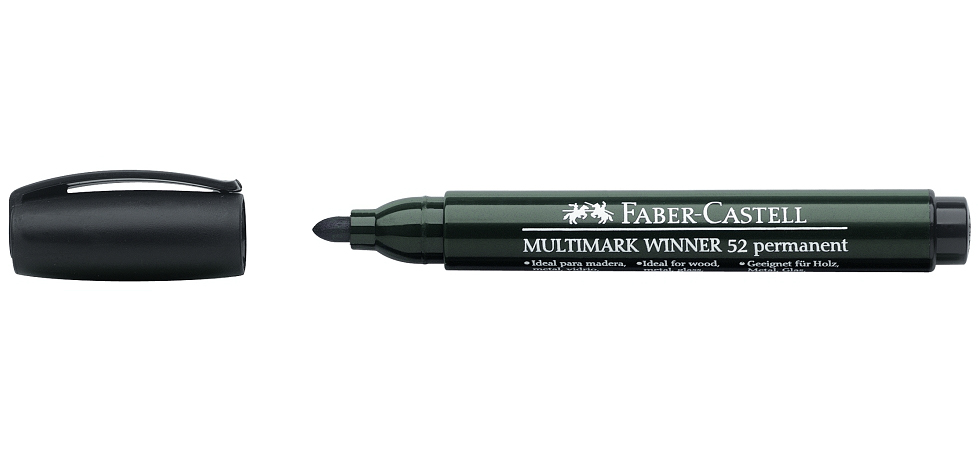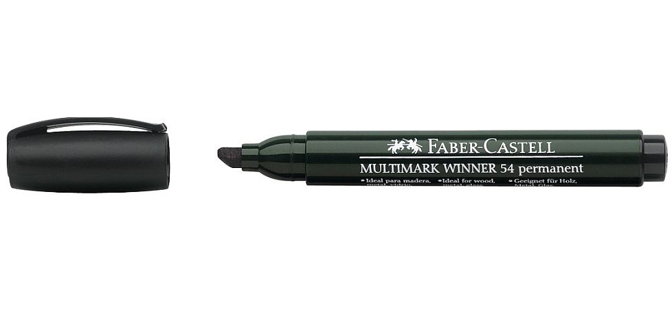 Перманентный маркер Faber-Castell с наконечником двух видов - пулевидным и скошенным.