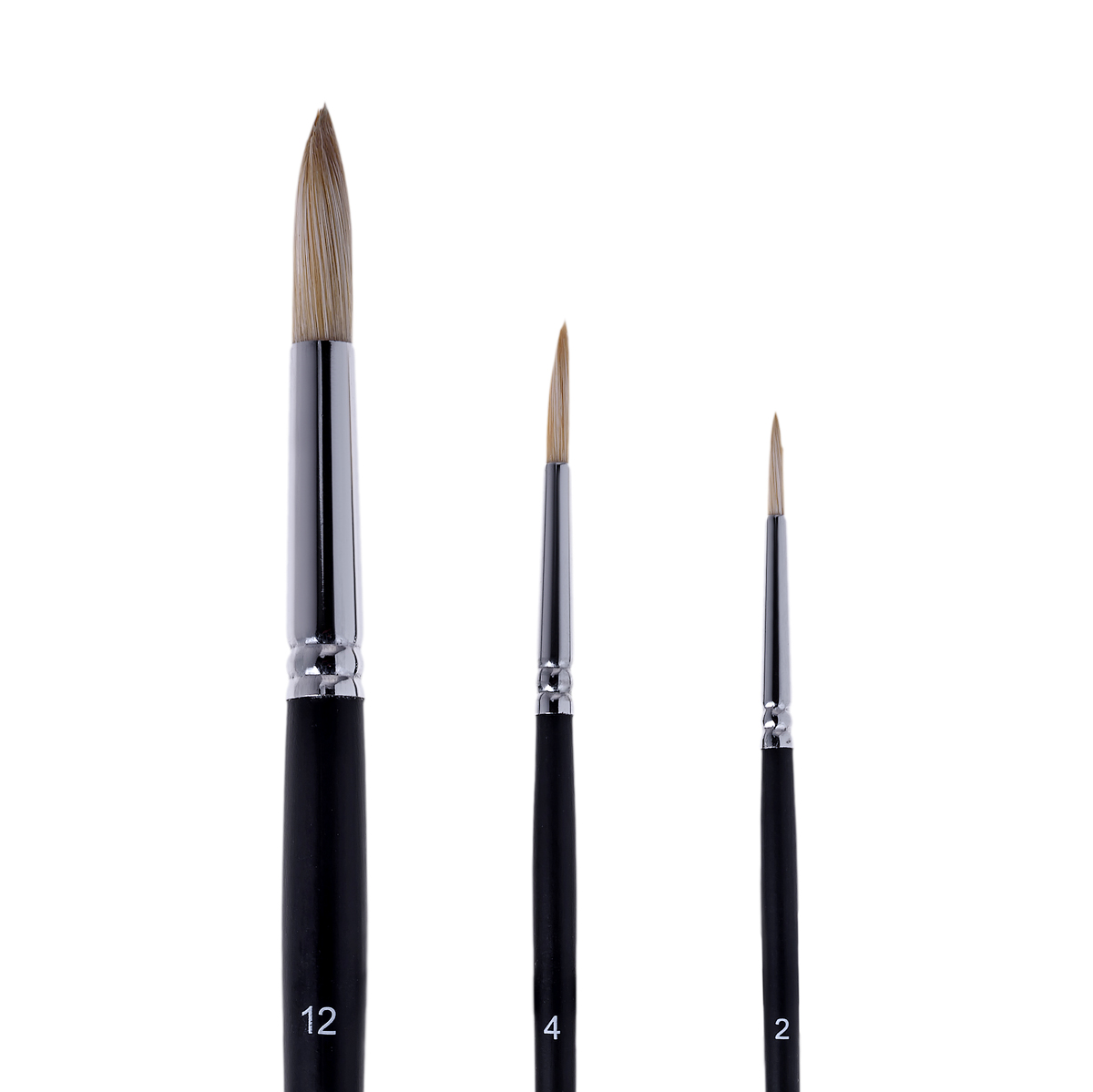 Круглые кисти Малевичъ из натуральной отбеленной свиной щетины высшего качества для работы гуашью, акрилом, маслом и темперой.