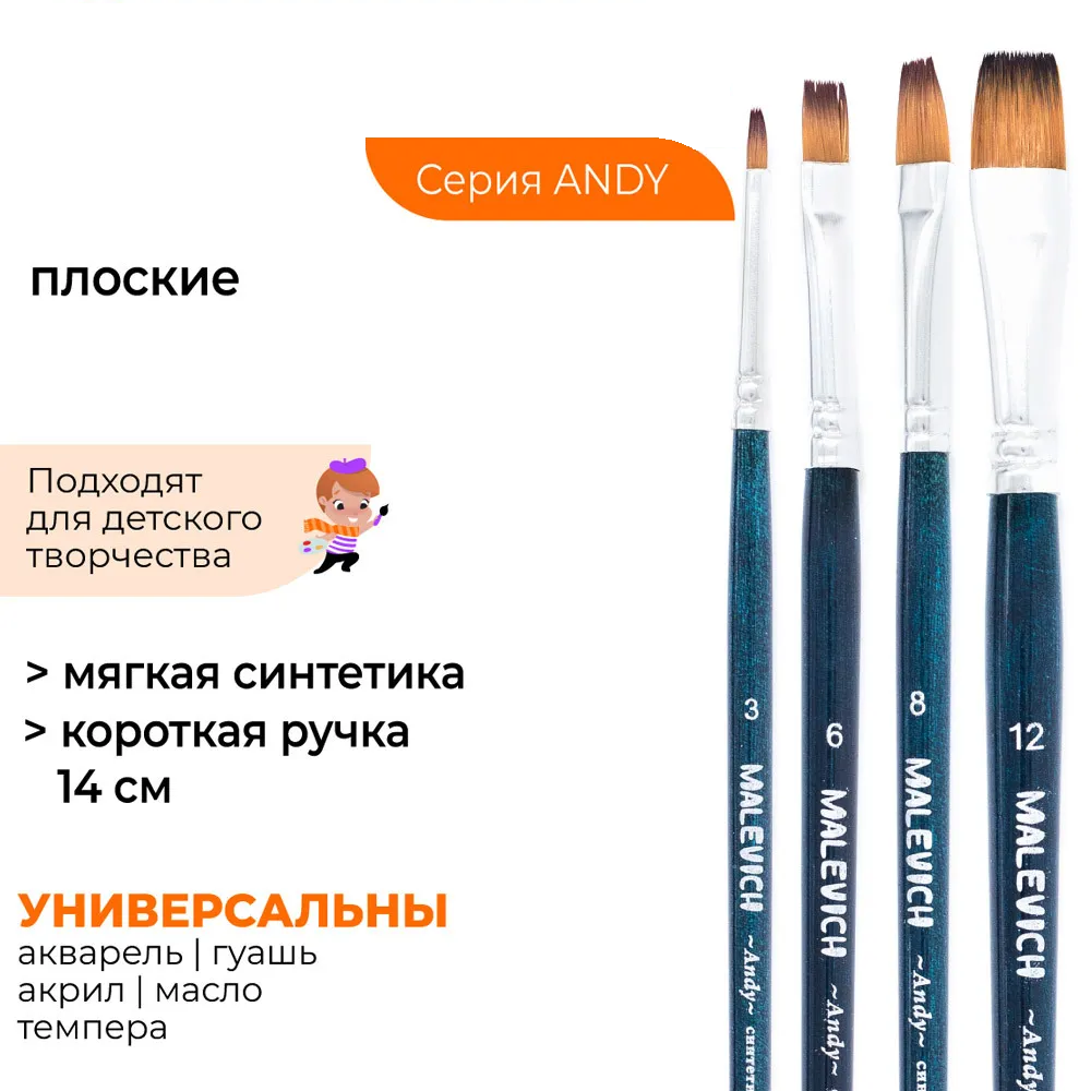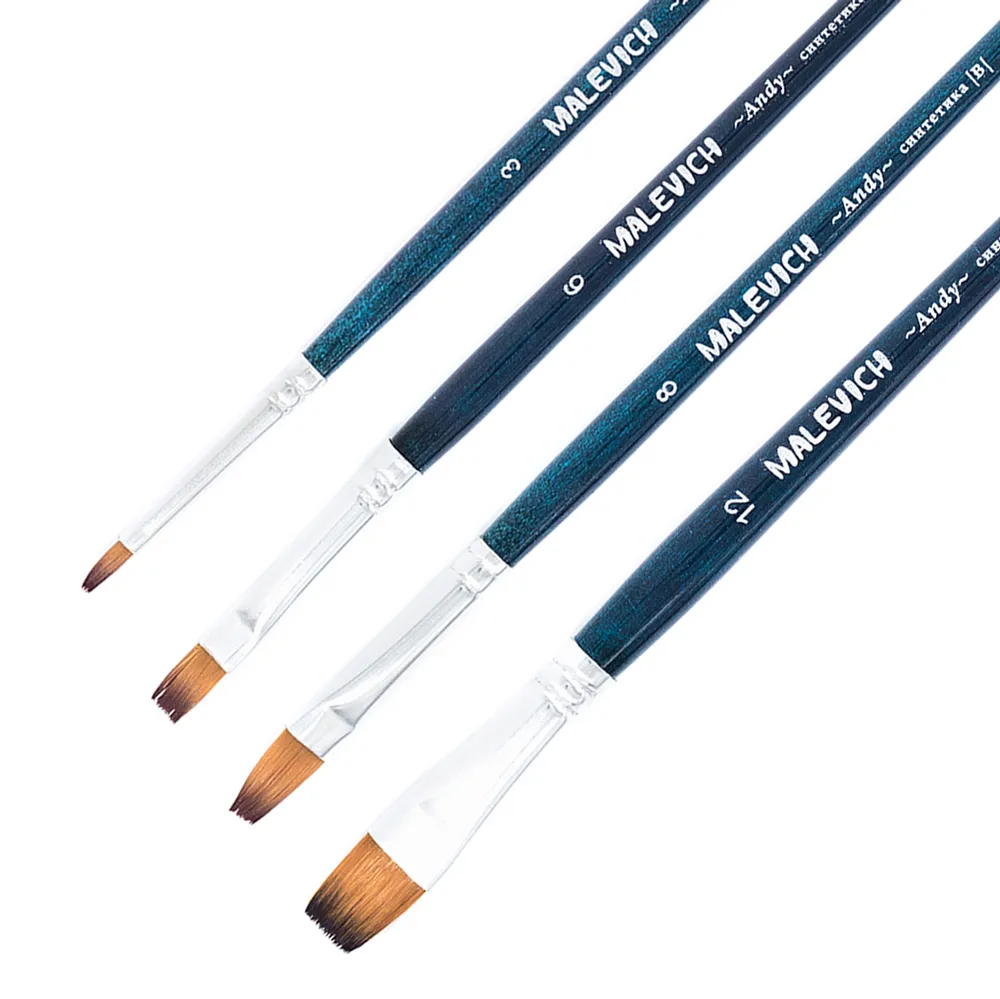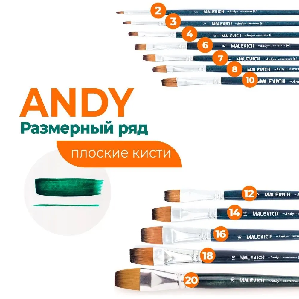 Кисти из синтетики серии Andy это мягкая универсальная синтетика, которая подходит практически для любых видов красок.