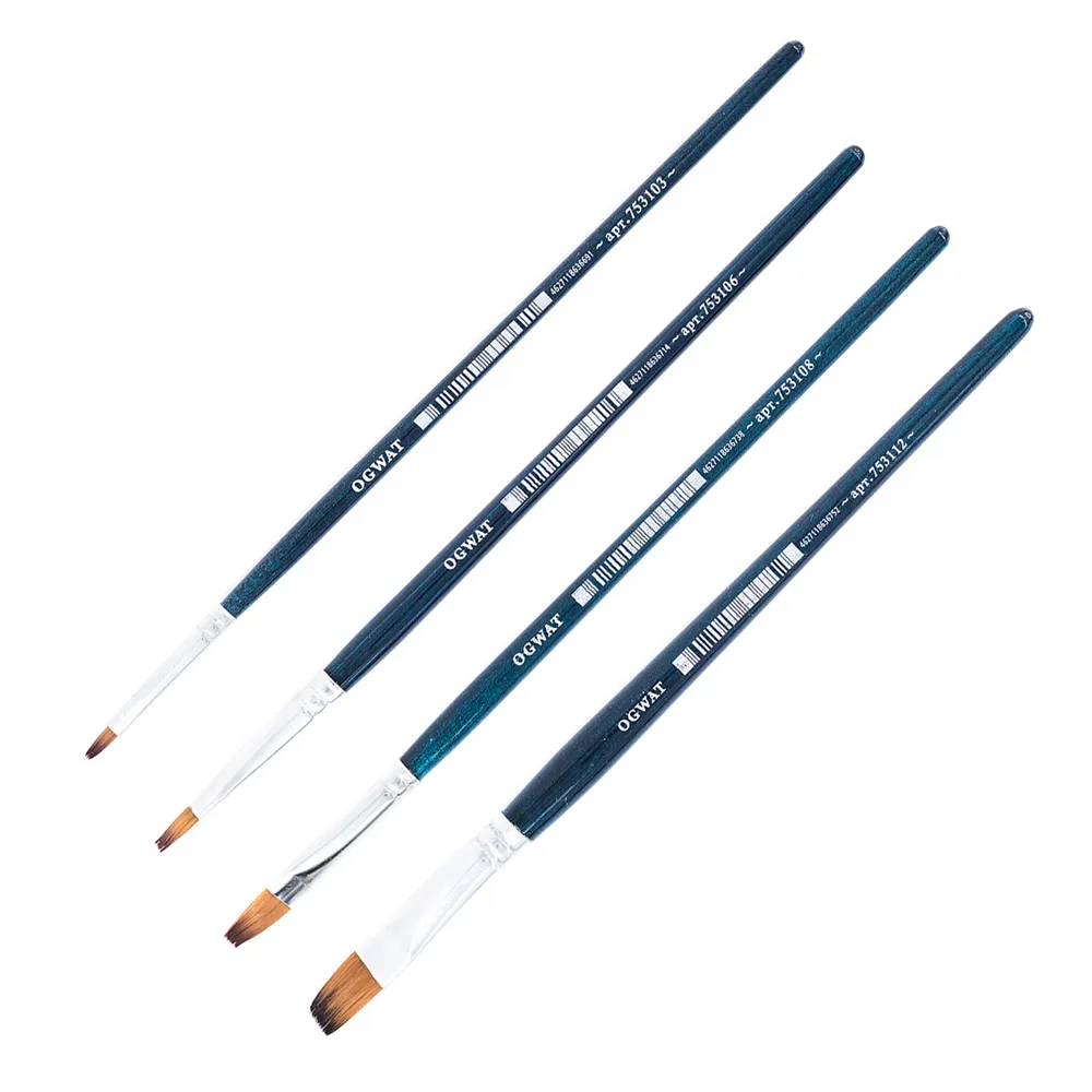 Синтетика рыжего цвета с темным кончиком, ручка покрыта синим лаком, ворс закреплен аллюминиевой втулкой с двойной обжимкой. Привлекательный внешний вид и понятная маркировка для удобства покупателя.