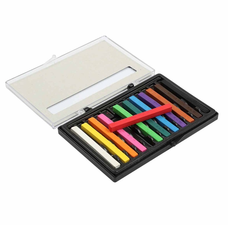 Наборы цветной пастели в картонной коробке содержат сбалансированный спектр из 12, 24 или 48 цветов.