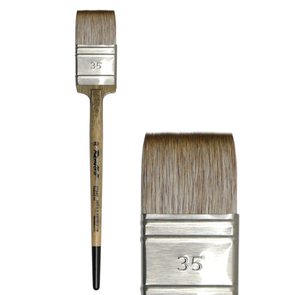 Кисти-флейц из синтетики, имитирующей волос мангуста Roubloff плоские серии 5T24C и наклонные серии 5T25C имеют более жесткую структуру, чем волос белки, но более мягкую, чем свиная щетина; применима для работы с такими красками, как акрил, гуашь, темпера, тушь и акварель