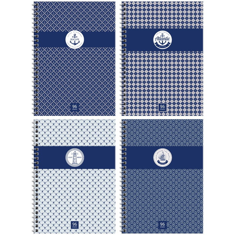 Тетрадь 96л., А5, клетка на гребне "Узоры. Sea pattern", глянц. ламинация, твердая обложка