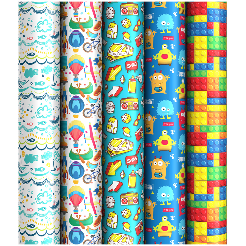 Упаковочная бумага глянц. 70*100см, "Для мальчиков", 1 лист, 80г/м2, ассорти 5 дизайнов
