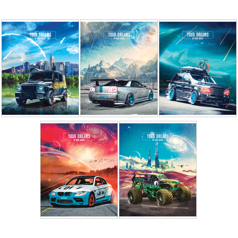 Тетрадь общая формата А5 (165*205 мм) на скобе, 80 листов. Внутренний блок – офсет 60 г/м², белизна 100%, клетка с полями. Обложка изготовлена из импортного целлюлозного мелованного картона, отделка обложки – водный лак.