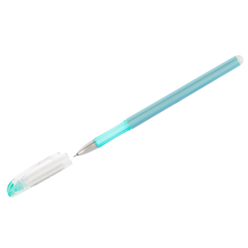 Ручка гелевая стираемая, синие чернила. Игольчатый пишущий узел 0,38 мм. Термочувствительные чернила становятся невидимыми при нагревании. Нагрев достигается трением встроенным в корпус ручки ластиком. Обесцвеченные чернила проявляются при низкой температуре. Упакованы в картонную коробку по 12 шт.