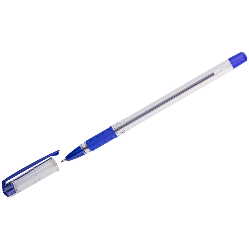 Шариковая ручка. Корпус прозрачный с резиновым грипом. Чернила на масляной основе. Пишущий узел - 1 мм. Цвет стержня - синий.