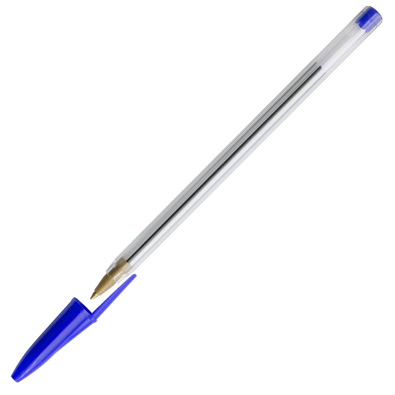 Шариковая ручка с синими чернилами. Толщина линии - 0,5 мм. Корпус ручки - прозрачный пластик.