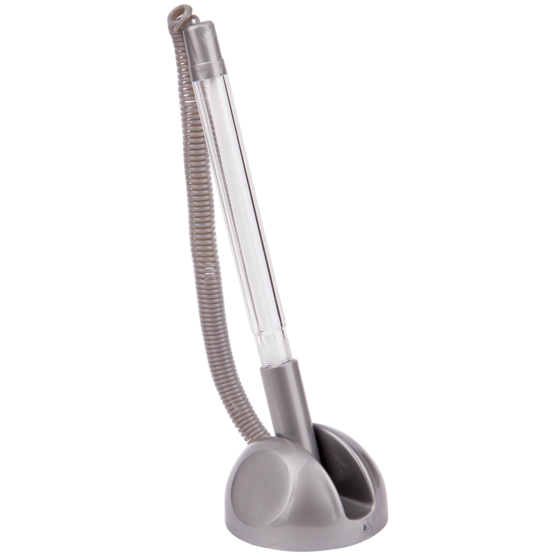 Настольная шариковая ручка на подставке. Подставка с регулируемым углом наклона ручки для более удобного использования. Подставка фиксируется на ровной поверхности с помощью клейкого основания. Идеально подходит для мест с высокой проходимостью: стойки регистрации, банки, ресепшен и др. Упакована в индивидуальный пакет с европодвесом.