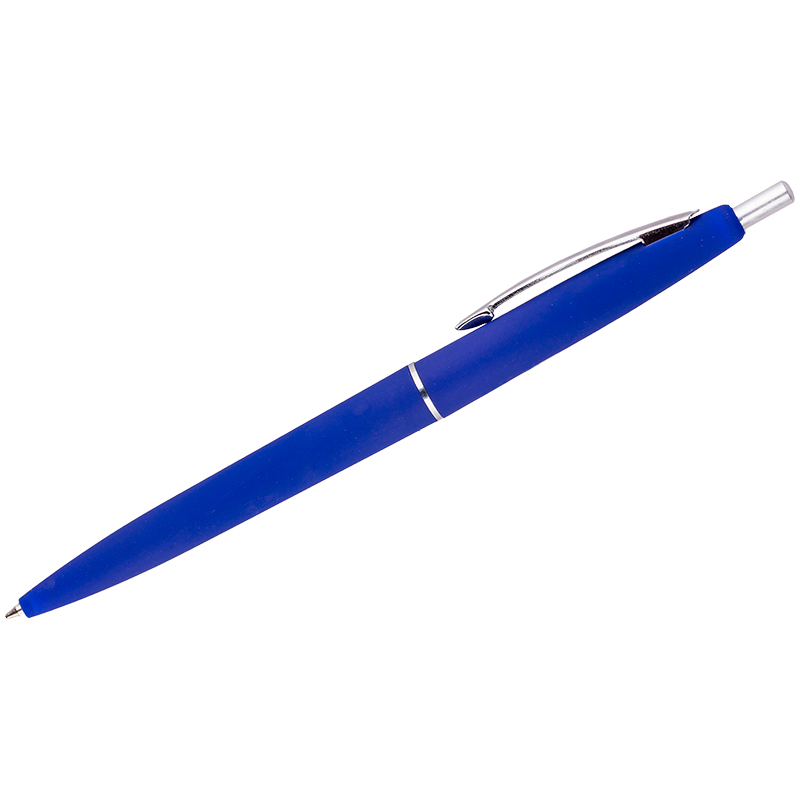 Автоматическая шариковая ручка. Корпус из непрозрачного пластика, синий. Антискользящие покрытие. Пишущий узел - 0,7 мм. Цвет чернил - синий.