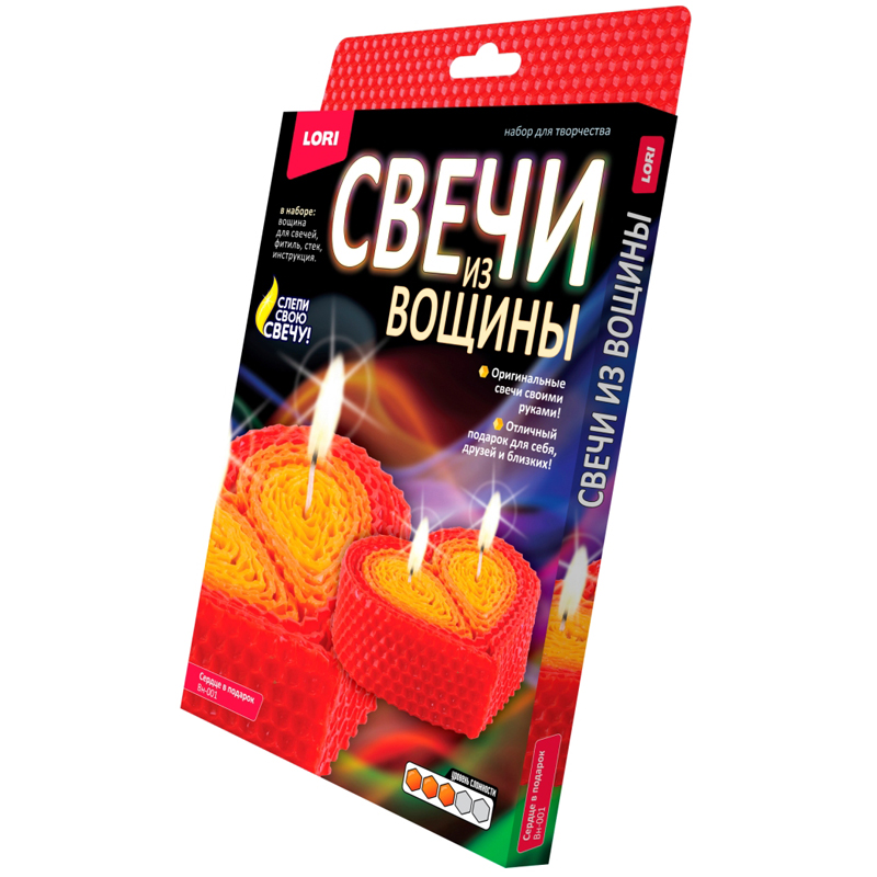 Вощина -тонкие листы с ячейками в виде шестиугольников серо-желтого цвета. Вощина издревле применяется в пчеловодстве, где служит строительным материалом для сот, существенно облегчая труд пчел, увеличивая медонос. Этот же материал использовали для изготовления свечей. Принимая во внимание многовековой опыт народного творчества, торговая марка LORI разработала уникальный материал - вощина для лепки свечей. Вощина от LORI - отличный материал для создания свечей: мягкий, пластичный, легко приобретает нужную форму. Серия наборов позволит Вам создать оригинальные свечи своими руками из разноцветных листов вощины. Готовое изделие не только будет предметом декора, но и послужит отличным подарком для друзей и близких. В набор входит: вощина для свечей, фитиль, стек, инструкция.