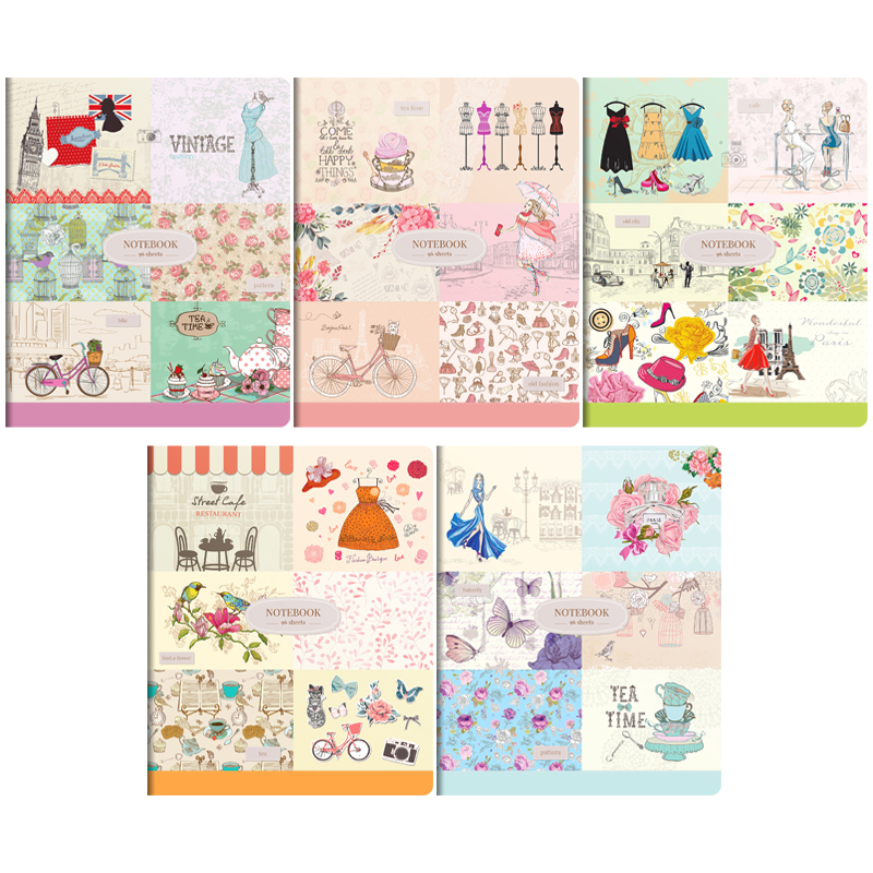 Тетрадь 96л., А5, клетка "Винтаж. Модный коллаж", ВД-лак