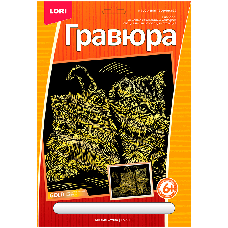 Гравюра - особый вид графического искусства. Сцарапывая верхний слой гравюры специальным штихелем, входящим в набор, ребёнок создает картину-гравюру. Состав: основа с контуром рисунка, штихель, инструкция