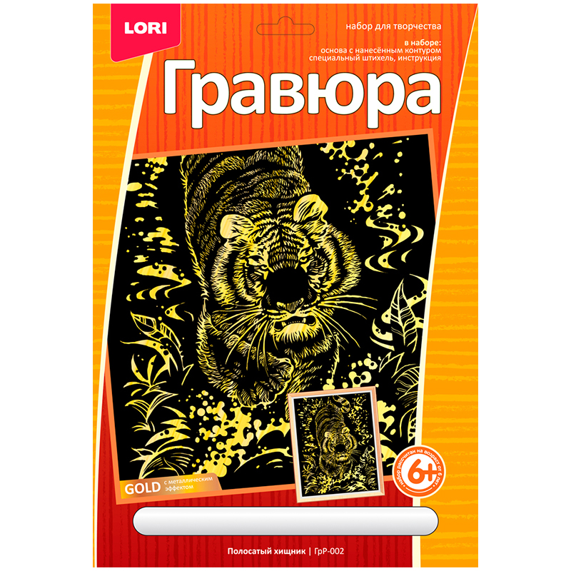 Гравюра - особый вид графического искусства. Сцарапывая верхний слой гравюры специальным штихелем, входящим в набор, ребёнок создает картину-гравюру. Состав: основа с контуром рисунка, штихель, инструкция