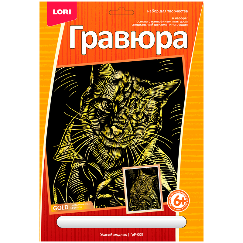 Контур рисунка уже нанесен на черный фон. С помощью специального штихеля изображение процарапывается, и из-под слоя краски появляется золотая основа. В результате получается контрастный рисунок. Комплектация - основа с контуром, штихель, инструкция. Упаковка - картонный пакет с европодвесом.