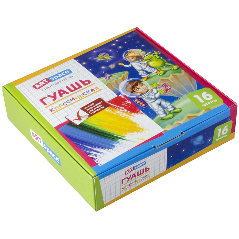 Набор гуашевых красок, 16 цветов, 20 мл. Насыщенные и яркие цвета. Краски хорошо разносятся на бумаге.