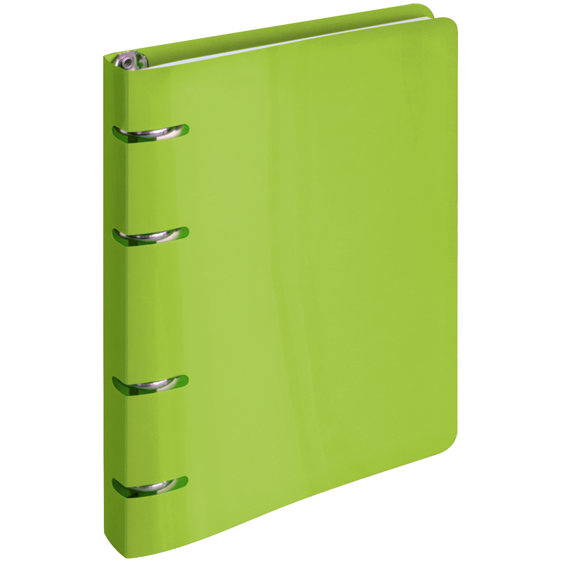 Тетрадь на кольцах с пластиковой обложкой яркого и насыщенного салатового цвета станет стильным аксессуаром как в институте, так и в офисе. Стильная вырубка под кольца тетради делает изделие еще более интересным.