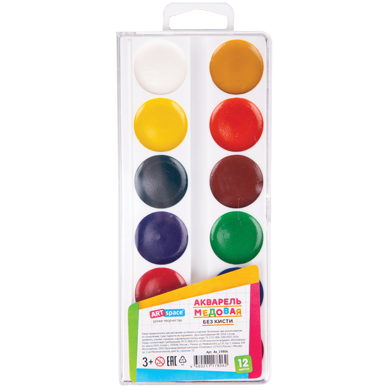 Краски акварельные Спейс характеризуются яркими сочными цветами и удобной упаковкой. Краски изготовлены с добавлением натуральной патоки и пчелиного меда.