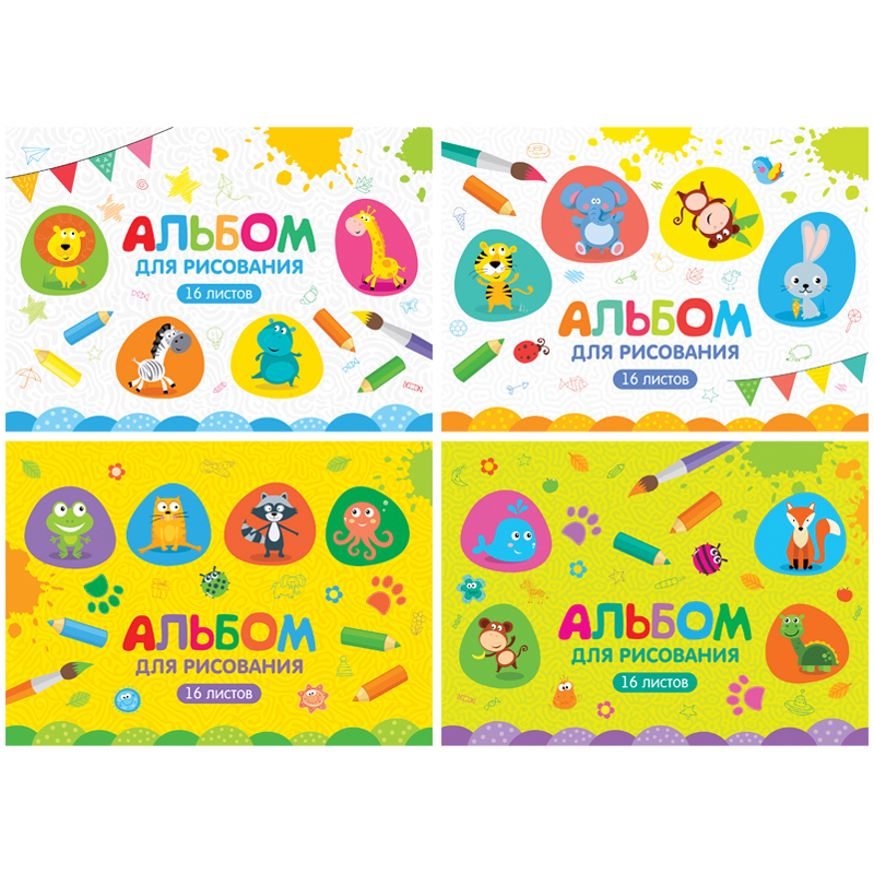 Альбом для рисования А5 формата на скобе. Обложка — мелованный картон 200 г/м2. Внутренний блок - офсетная бумага 100 г/м2.