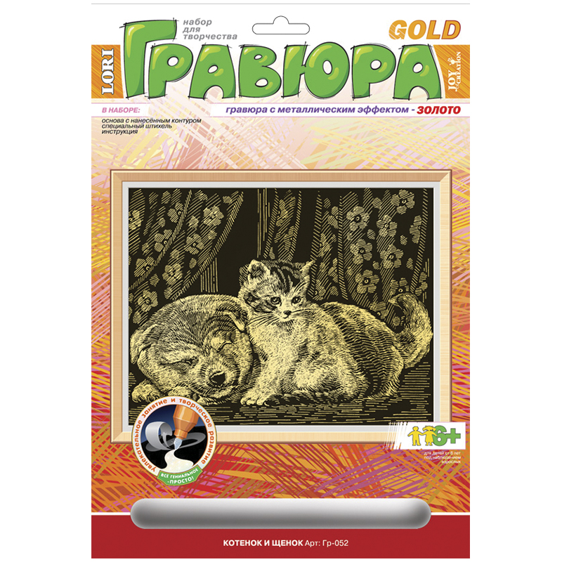 Контур рисунка уже нанесен на черный фон. С помощью специального штихеля изображение процарапывается, и из-под слоя краски появляется золотая основа. В результате получается контрастный рисунок. Комплектация - основа с контуром, штихель, инструкция. Упаковка - картонный пакет с европодвесом.