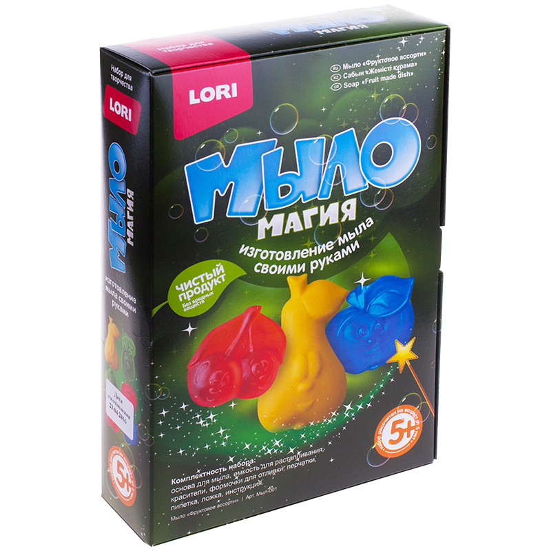 Мыльная основа, формы для заливки мыльного раствора, пищевой краситель, инструкция