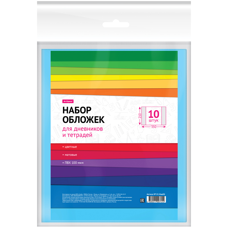 Набор обложек (10шт.) 210*350 для дневников и тетрадей, ПВХ 100мкм, 5 цветов, матовые