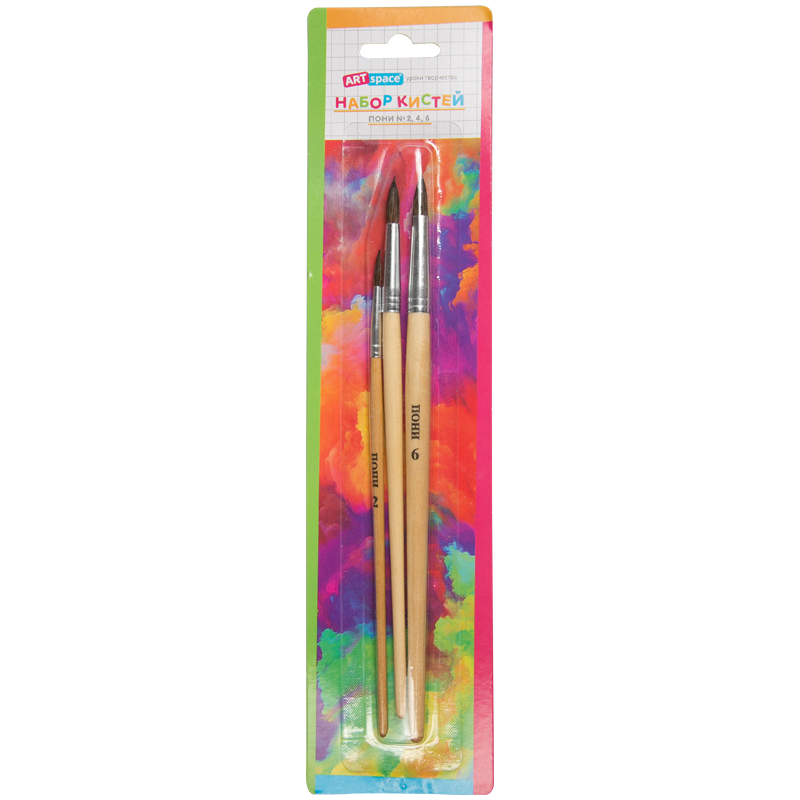 Набор кистей № 2,4,6 пони, круглые, 3 штподвес, материал — волос
