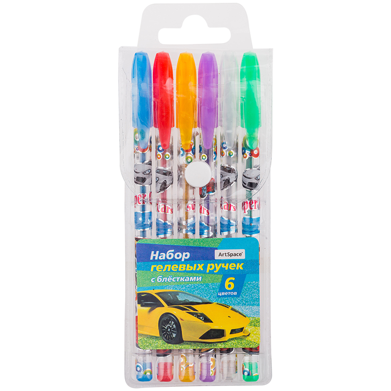 Набор гелевых ручек с глиттером, 6 цв., цвет чернил — ассорти, в блистере с ероподвесом