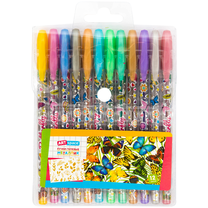 Набор гелевых ручек с чернилами металлик, 12 цветов, пищущий узел — 1 мм, упакованы в ПВХ чехол с европодвесом