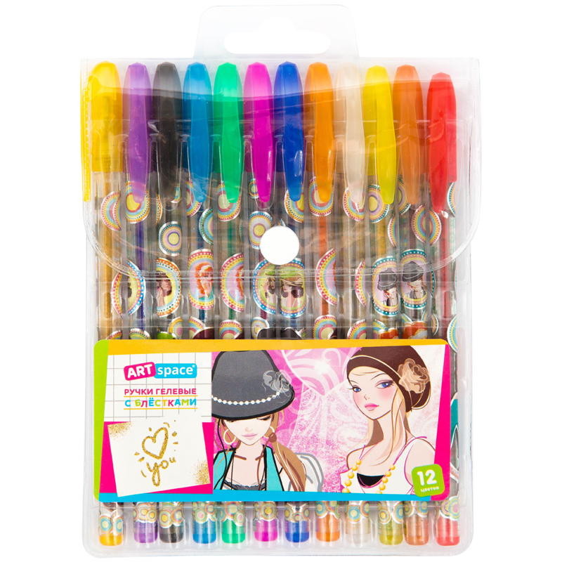 Набор гелевых ручек с глиттером, 12 цв., цвет чернил — ассорти, в блистере с европодвесом