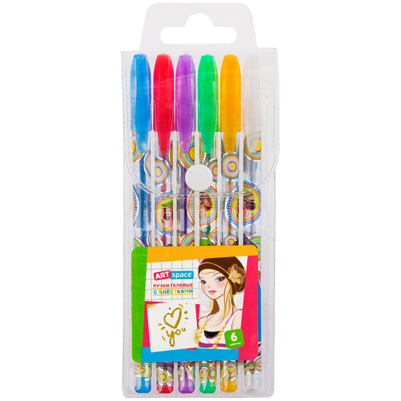 Набор гелевых ручек с глиттером, 6 цв., цвет чернил — ассорти, в блистере с ероподвесом