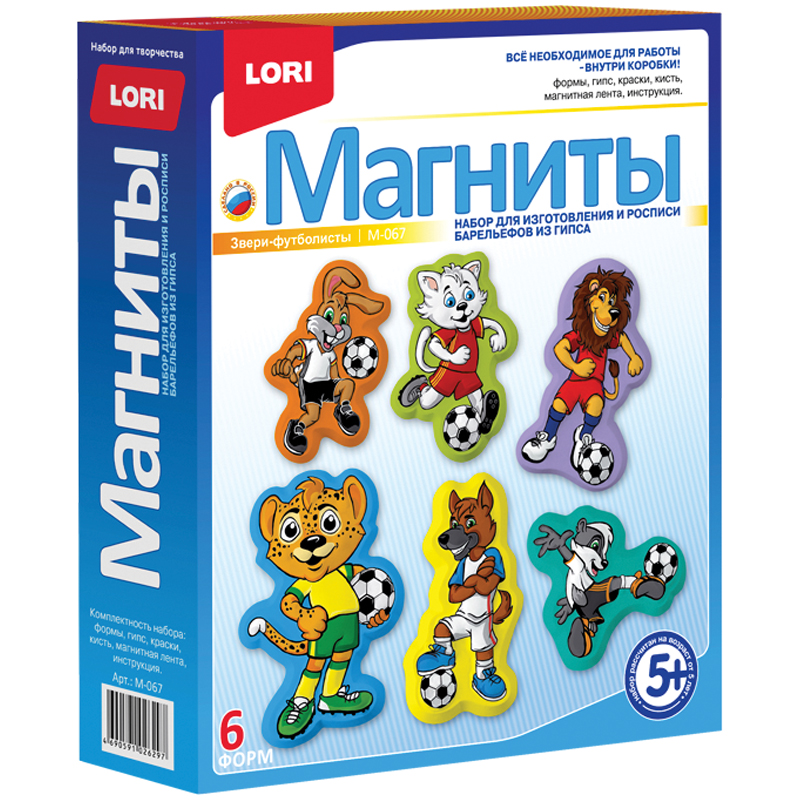 Набор для изготовления магнитиков из гипса. Состав набора: гипс, пластиковые формы, акриловая краска 6 цветов, кисть, магнитная лента, инструкция