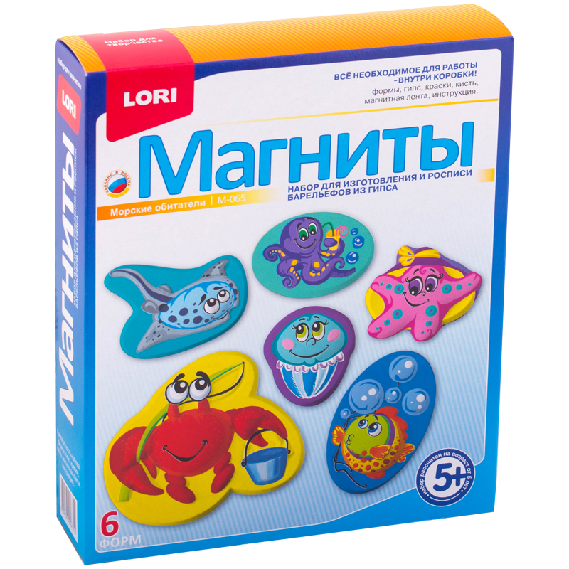 Формы, гипс, акварельные краски, кисть, магнитная лента