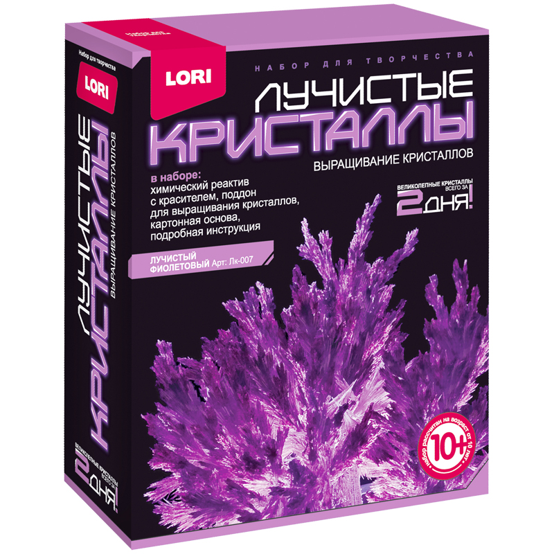 В состав набора входит химический реактив с красителем, поддон для выращивания кристаллов, картонная основа
