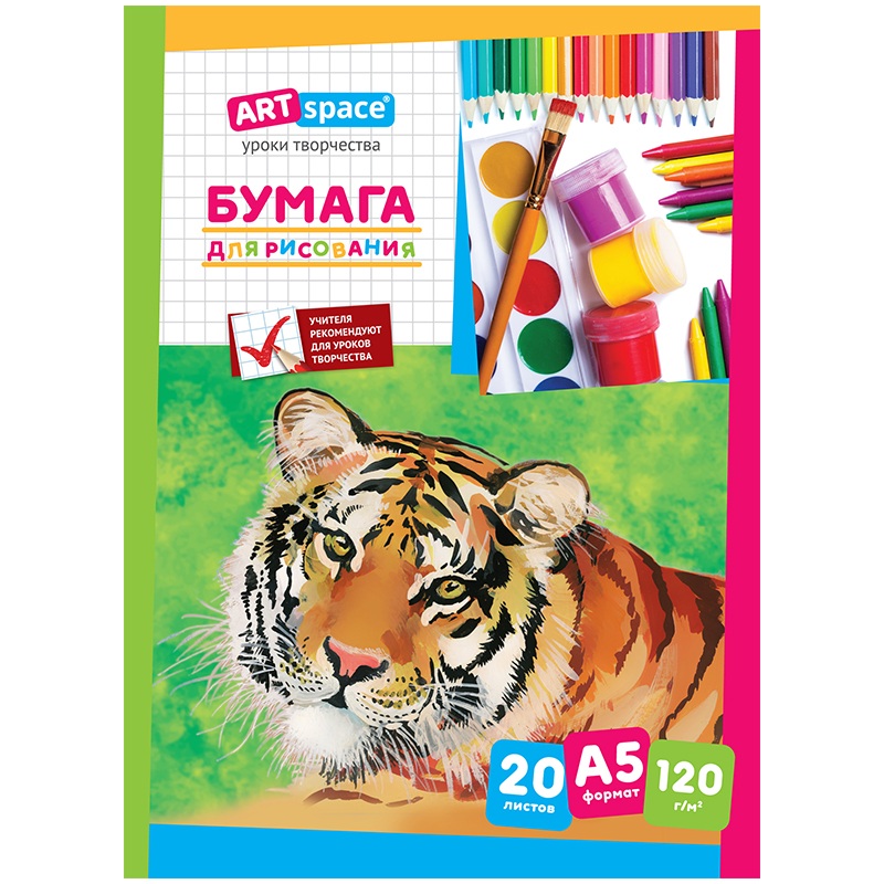 Папка для рисования из мелованного картона с внутренним блоком офсетной бумаги формата А5 плотностью 120 гр/м2 и белизной 100%. В блоке используется высококачественная бумага, а за счет более высокой плотности, в сравнении со стандартными альбомами, листы меньше просвечиваются и более устойчивы к рисованию красками.