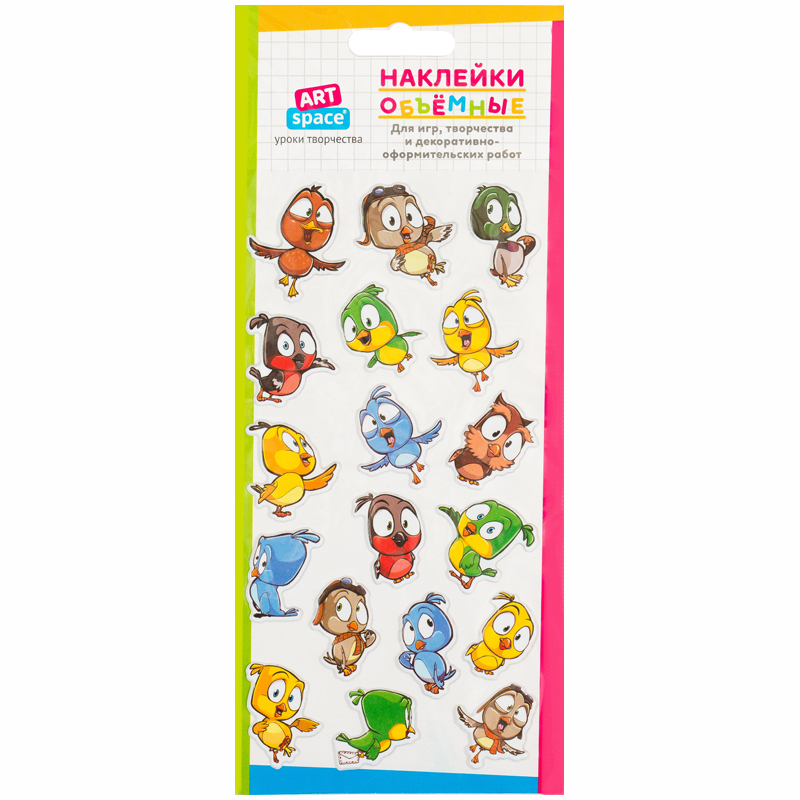 Яркие, объемные, мягкие, воздушные наклейки украсят любую поделку, открытку, подарочную упаковку, канцтовары, предметы интерьера, мобильный телефон или любой другой аксессуар. Легко отделяются от основы и надежно приклеиваются. 18 дизайнов в ассортименте.