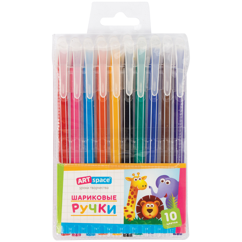 Набор шариковых ручек с разноцветными ченилами. Цвет корпуса в цвет чернил. Упакован в чехол с европодвесом. Идеально подходит для творчества.
