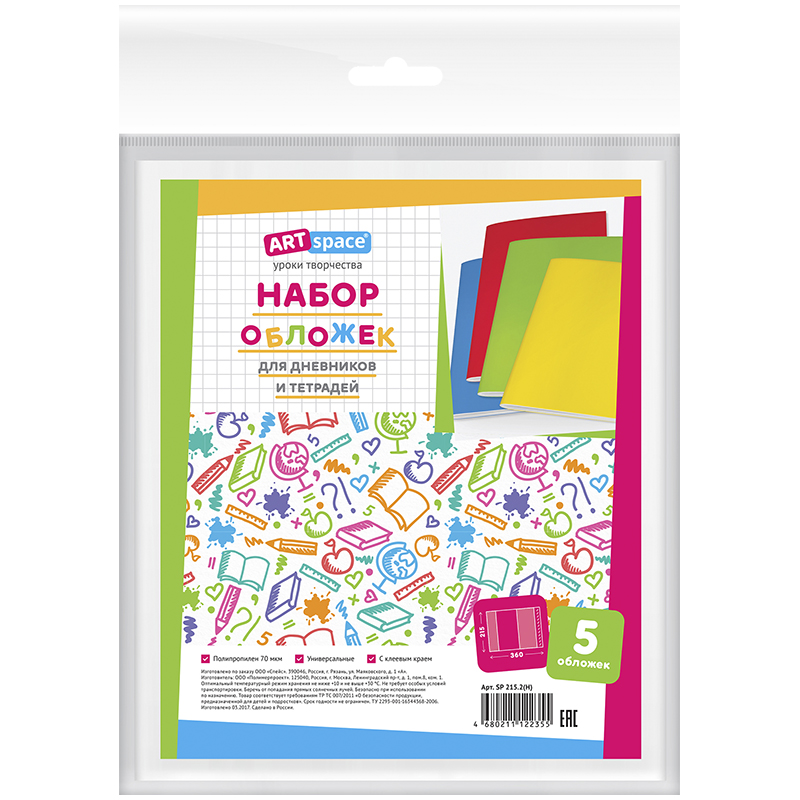 Набор обложек (5шт.) 215*360 для дневников и тетр., универс., с липким слоем, ПП 70мкм