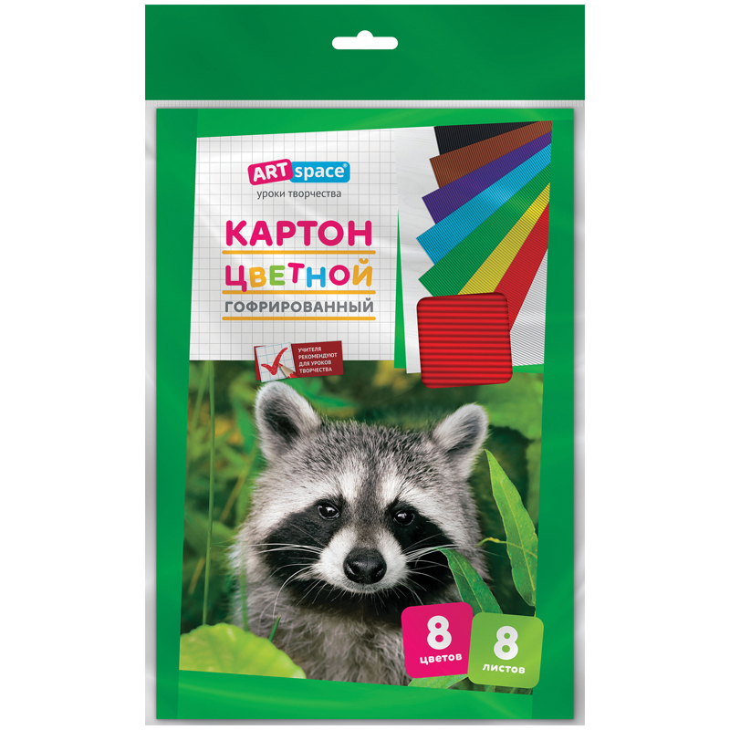 Гофрированный картон является очень удобным материалом для создания детских поделок, аппликаций: он может легко скручиваться и сминаться без дополнительных усилий. Поэтому поделки из гофрированного картона можно использовать в совместном творчестве с детьми младшего возраста. Особое место в создании поделок из гофрокартона занимает техника квиллинг, такая техника успешно применяется для создания объемных цветков. Наибольшей популярностью среди детей пользуется создание открытки. Благодаря тому, что гофрированный картон плотный, поделки из него получаются крупные, надежные и не разваливаются со временем. Поэтому он так удачно подходит для создания объемных фигур. Благодаря своей декоративности и широкому выбору цветов используется в различных дизайнерских проектах, при изготовлении декоративной упаковки и в моделировании. Набор из 8 листов мелованного картона формата А4 разных ярких цветов в папке с замком для удобного хранения и европодвесом.