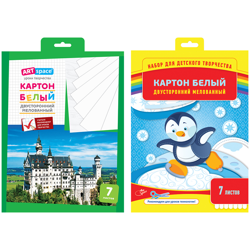 Картон часто используют как основу для поделок. Набор картона для творчества включает в себя 7 листов двустороннего белого мелованного картона, формат А4.