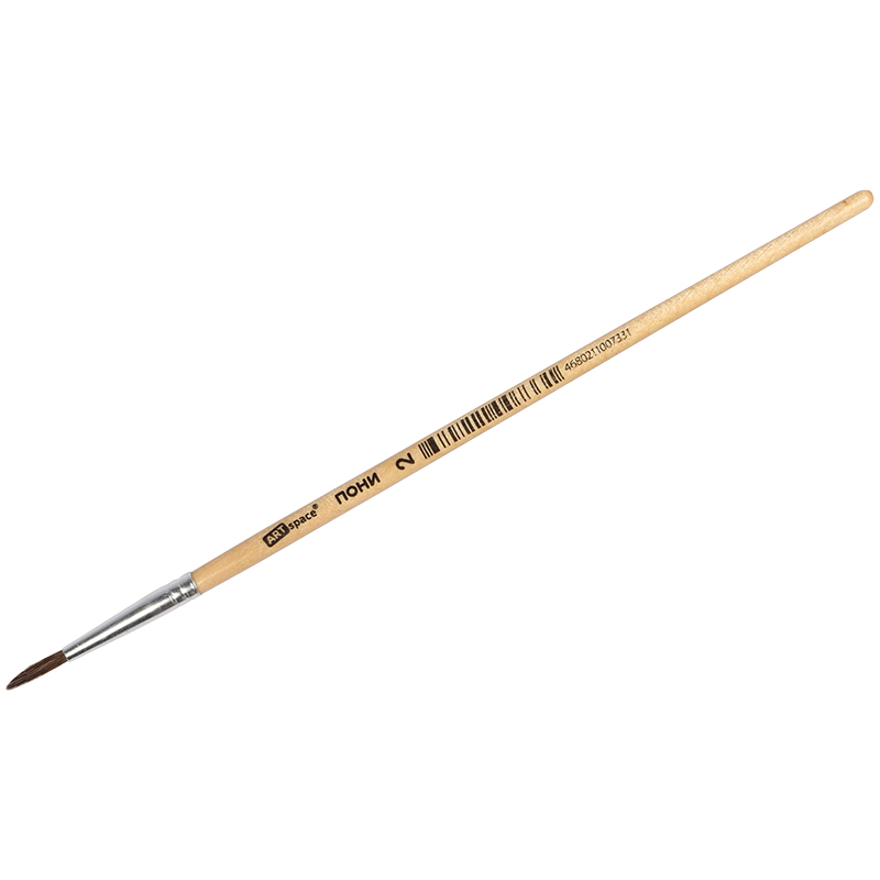 Кисть пони, круглая. С деревянной ручкой покрытой прозрачным лаком. На каждой ручке штрихкод.