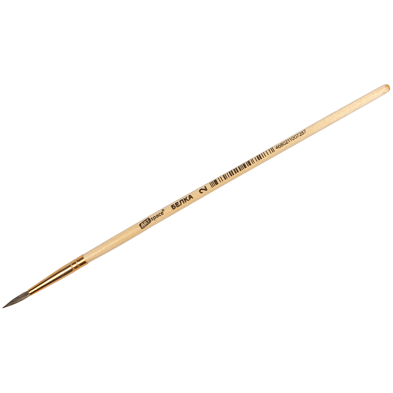 Кисть белка, круглая. С деревянной ручкой покрытой прозрачным лаком. На каждой ручке штрихкод.