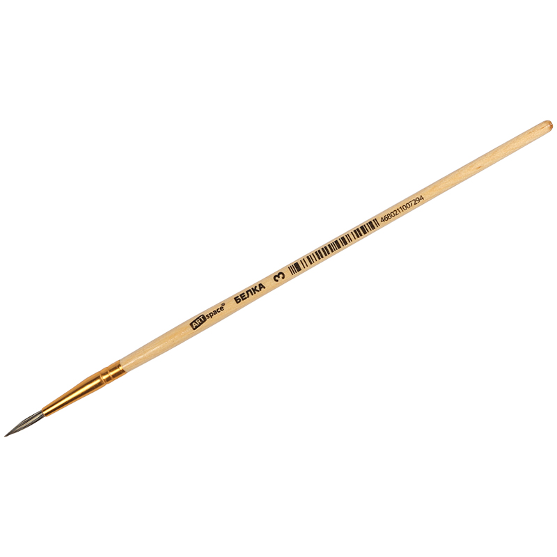Кисть белка, круглая. С деревянной ручкой покрытой прозрачным лаком. На каждой ручке штрихкод.