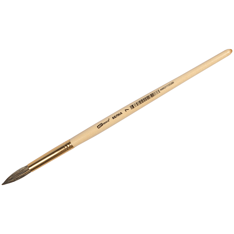 Кисть белка, круглая. С деревянной ручкой покрытой прозрачным лаком. На каждой ручке штрихкод.