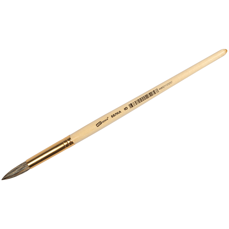 Кисть белка, круглая. С деревянной ручкой покрытой прозрачным лаком. На каждой ручке штрихкод.