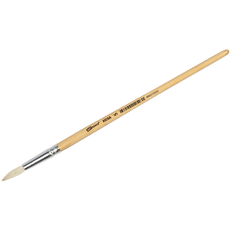 Кисть коза, круглая. С деревянной ручкой покрытой прозрачным лаком. На каждой ручке штрихкод.