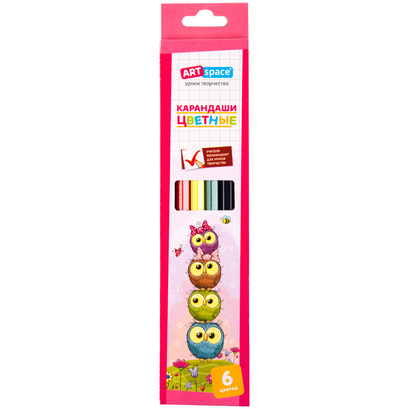 Набор цветных карандашей, 6 цветов, с заточенным грифелем. Яркие насыщенные цвета, мягкий грифель. Материал - дерево, легко затачиваются. Классический шестигранный корпус, упакованы в картонную коробку с петлей-европодвесом.