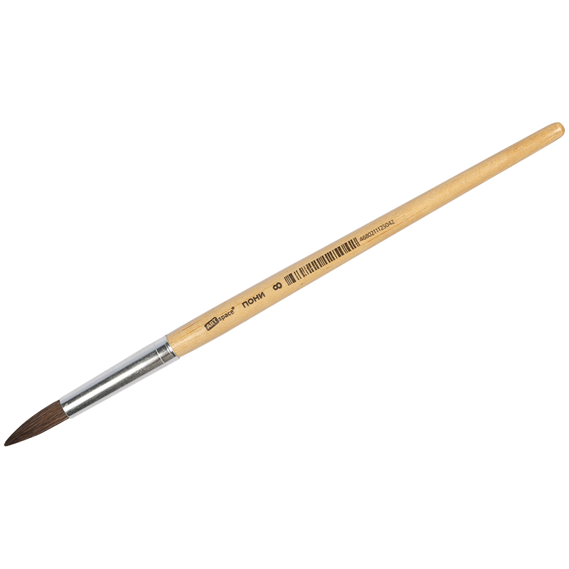 Кисть пони, круглая. С деревянной ручкой покрытой прозрачным лаком. На каждой ручке штрихкод.