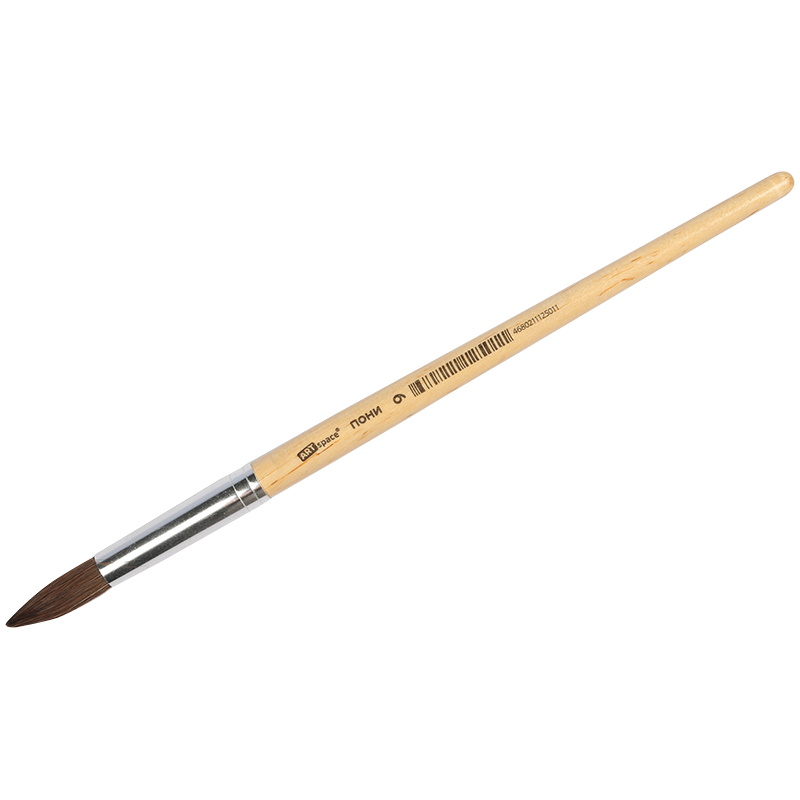 Кисть пони, круглая. С деревянной ручкой покрытой прозрачным лаком. На каждой ручке штрихкод.