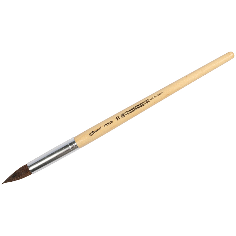 Кисть пони, круглая. С деревянной ручкой покрытой прозрачным лаком. На каждой ручке штрихкод.